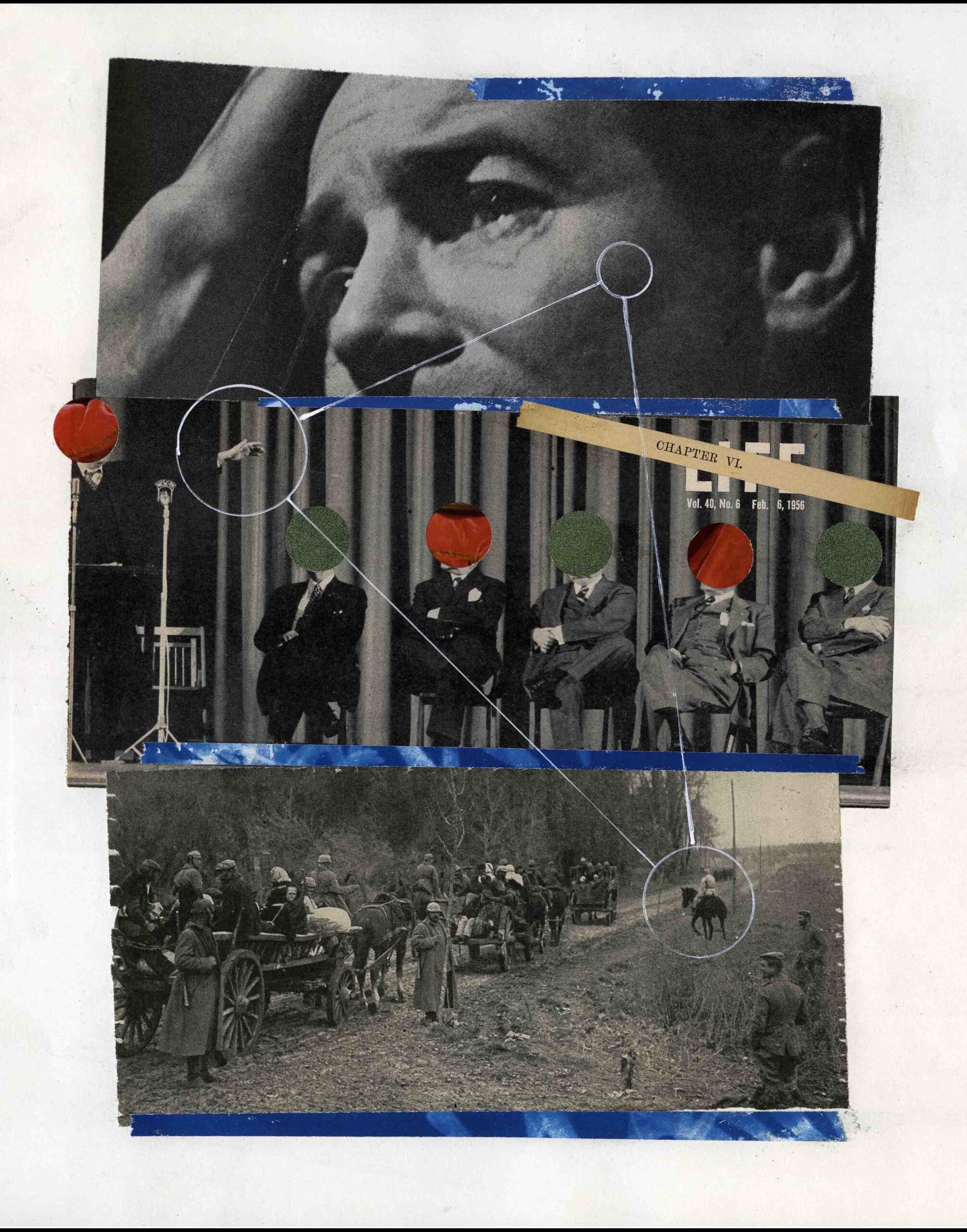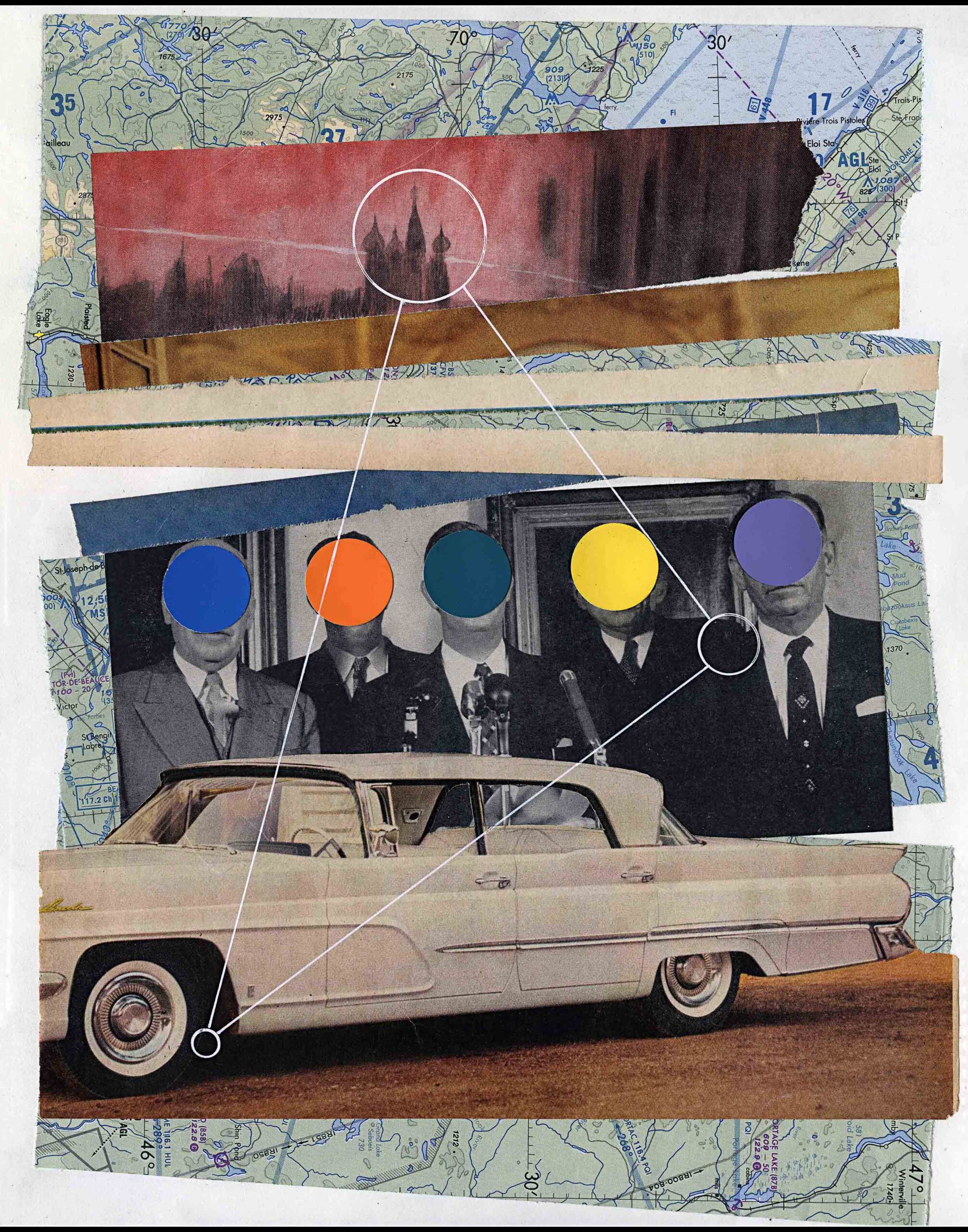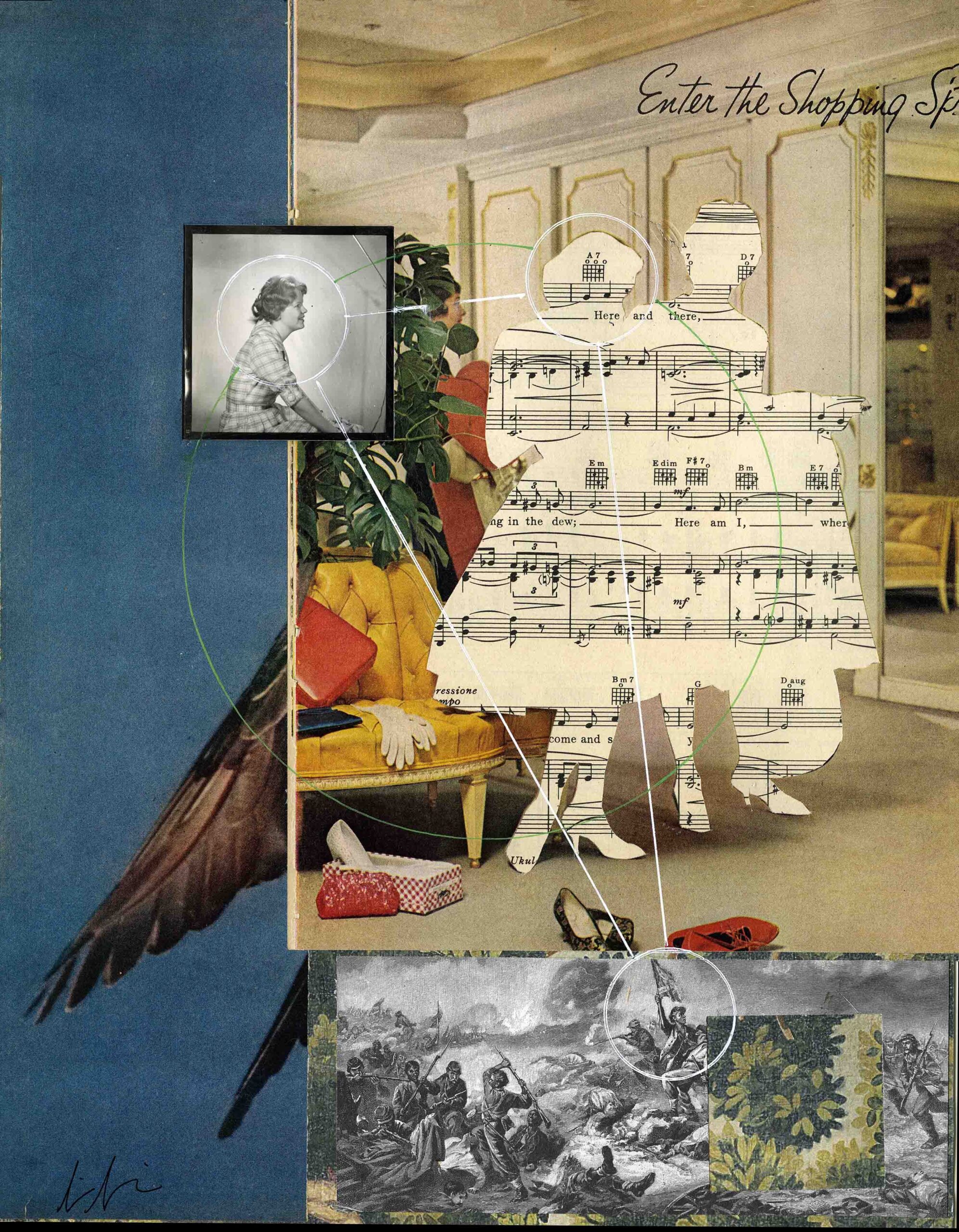 Cut To Fit is drawn from purposefully specific decades of vintage materials and various collected imagery and limited to a 14x11” format. Found imagery from just before the artist's birth, the 1940/50s, from popular magazines of the time represent what has been perceived to be an ideal time. In this work Sheffield explores the ideal façade presented in the advertisements pushing up against the unease documented in many of the the articles of the time. In this work he attempts to further subvert that ideal and bring the past unease to light, while drawing a parallel to our own current political and social unease. Within this process Sheffield cannot help but instill his aesthetic mixed with glimpses of humor, dread, and the anxiety of modern manhood using image juxtaposition, an occasional Polaroid or Cyanotype and the inexact process of cutting with a scalpel, and fixing the paper with glue.