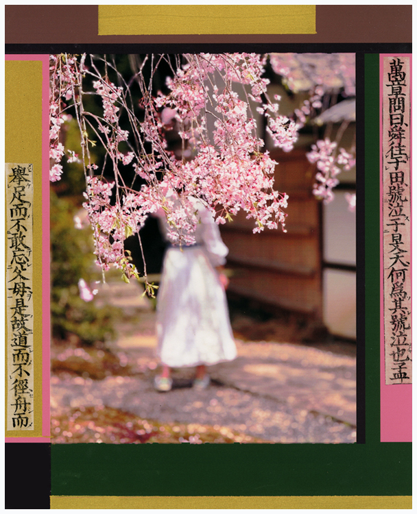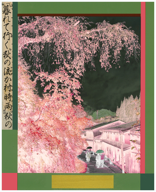 Japonisme: Fireworks and Cherry Blossoms continues this centuries-long artistic dialogue between East and West, past and present, printmaking and photography. Drawing inspiration from Hiroshige’s Ukiyo-e, I use photography as a bridge—layering each image with hand-painted gilding, colored surrounds, and fragments of text cut from ancient Japanese poetry books. Each photograph is interpreted uniquely, all are created in or inspired by Japan. These choices are not merely decorative; they are gestures of reverence, transformation, and connection.