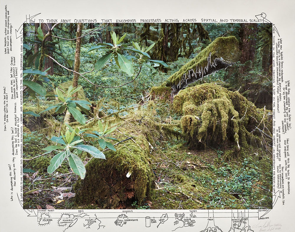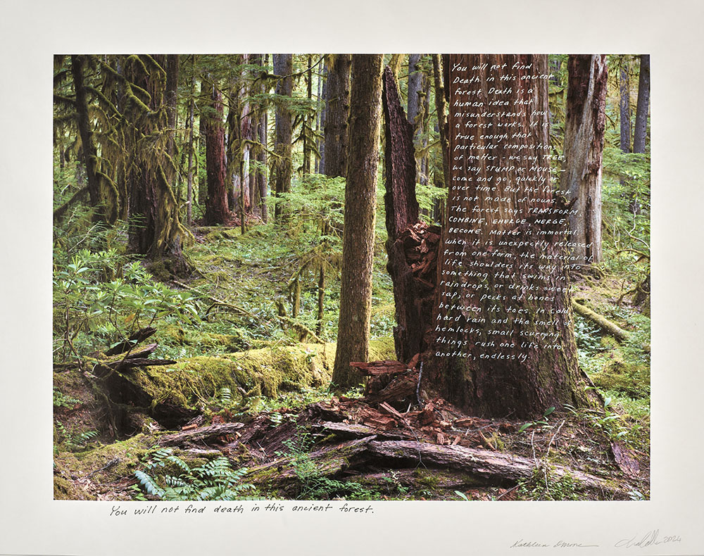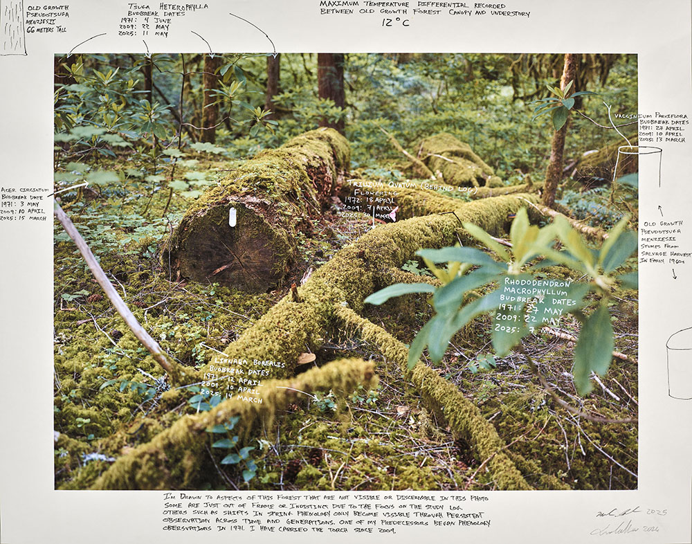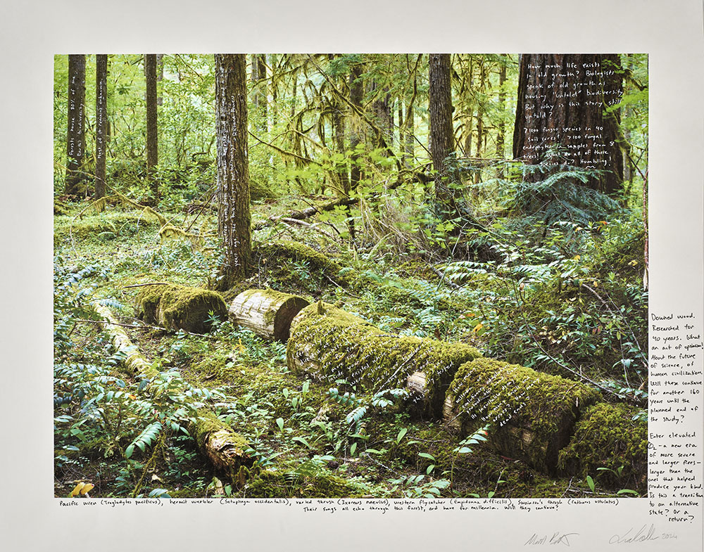 This project breaks down barriers between art and science, and creates a dialogue between text and image, landscape and viewer, expert, and novice, past, present, and future. Through the exploration of earthly archives such as old growth forests, my intention is to encourage people to think in terms of longer spans of time and consider what humanity and nature will look like in 100 or even 10,000 years.