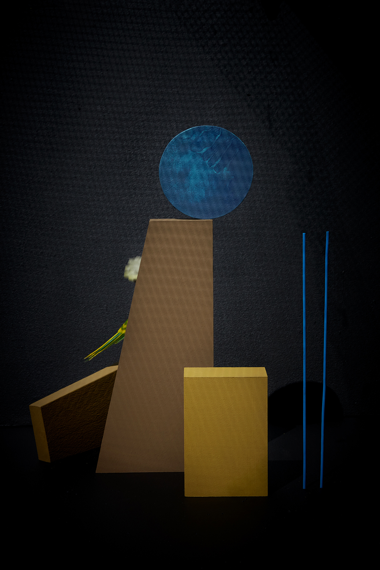 What appears digitally rendered is, in fact, entirely physical. Nothing in these images is computer-generated; all objects were built and arranged in real space. This deliberate approach emphasizes the tension between the tactile and the symbolic, between the staged and the spontaneous.