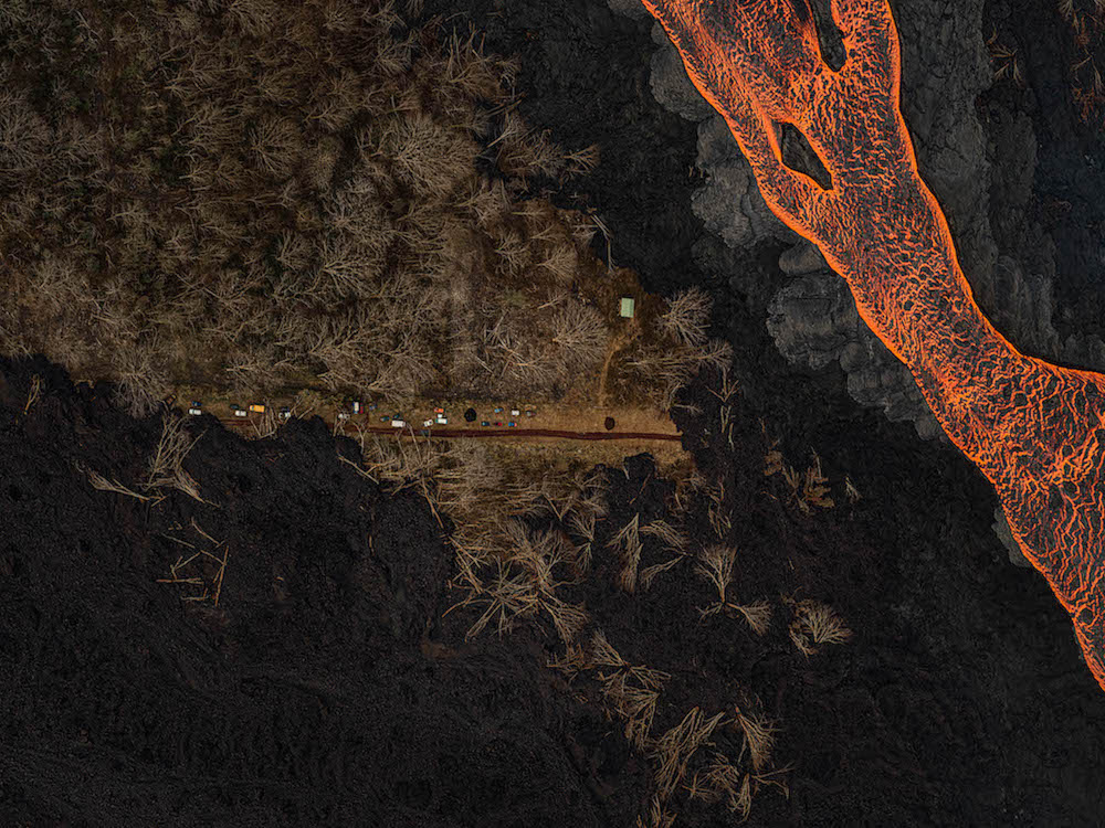 Photographed from a helicopter over Hawai‘i Island, the perspective reveals a rare view of the Earth’s wounds stretched across her skin, marked by eruptions, fire, and humanity’s scars. The camera becomes a quiet muse that honors the land in moments of upheaval and resilience. The photographs are not records alone, but an invitation to witness her endurance. Will we listen, or will it be in vain?