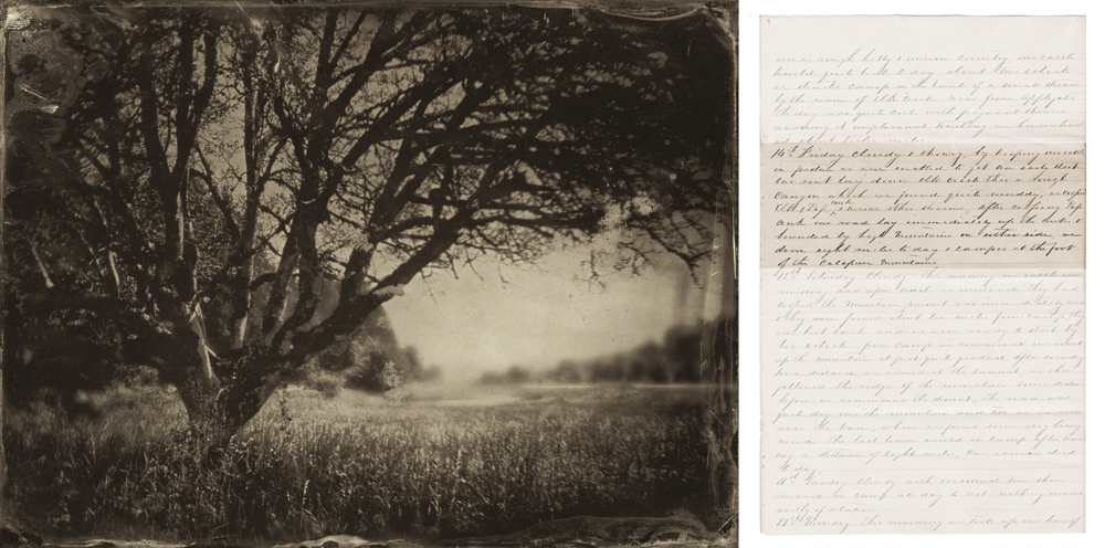 This project started with several years of preparation and research, reading through thousands of historical letters, looking over old survey maps from the 1850s, and utilizing satellite imagery from today. I was able to retrace the entire route and locate bygone roads that are no longer in existence while following others that are still here today. I made these photographs using an antique wooden view camera and the wet plate collodion photo process from the 1850s and paired them with the journal entries written in the same time period. These landscape photographs illustrate the fraught expedition that Ambrose detailed in his daily journal. The imperfect photos play off the serendipitous technical flaws to create ghostly images that echo the grim history of the past and capture the forgotten and seldom told story of Oregon's “Trail of Tears.”